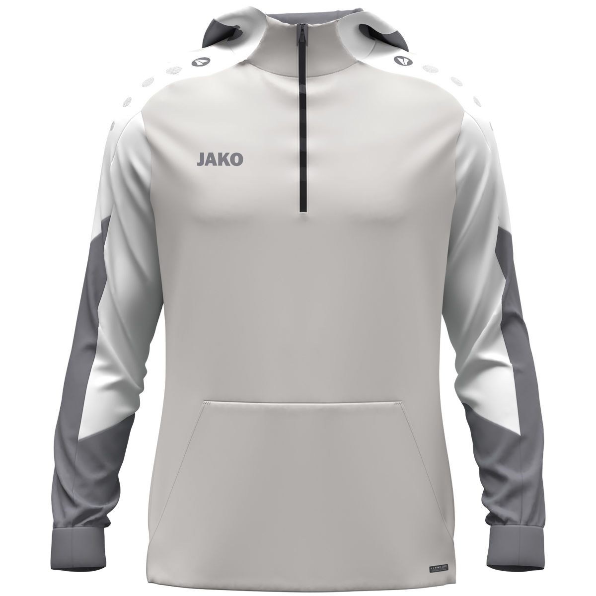Jako DYNAMIC ziptop majica s kapuljačom osmišljena je za sportaše koji žele dodatnu zaštitu, funkcionalnost i moderan sportski izgled tijekom treninga, zagrijavanja i boravka na otvorenom. Tehnički materijal pruža dobru prozračnost i ugodu pri nošenju, dok istovremeno zadržava toplinu u hladnijim uvjetima.