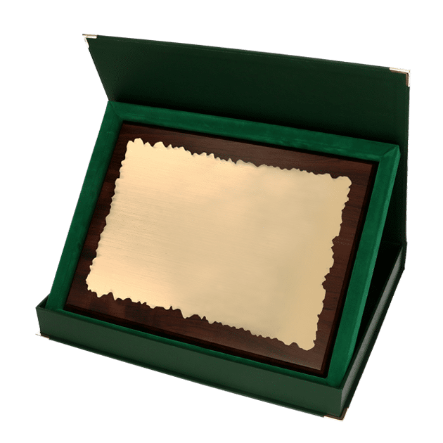 Wooden diploma with engraved laminate plate