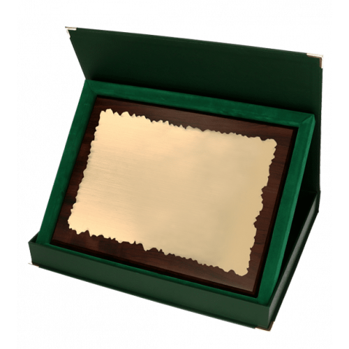 Wooden diploma with engraved laminate plate